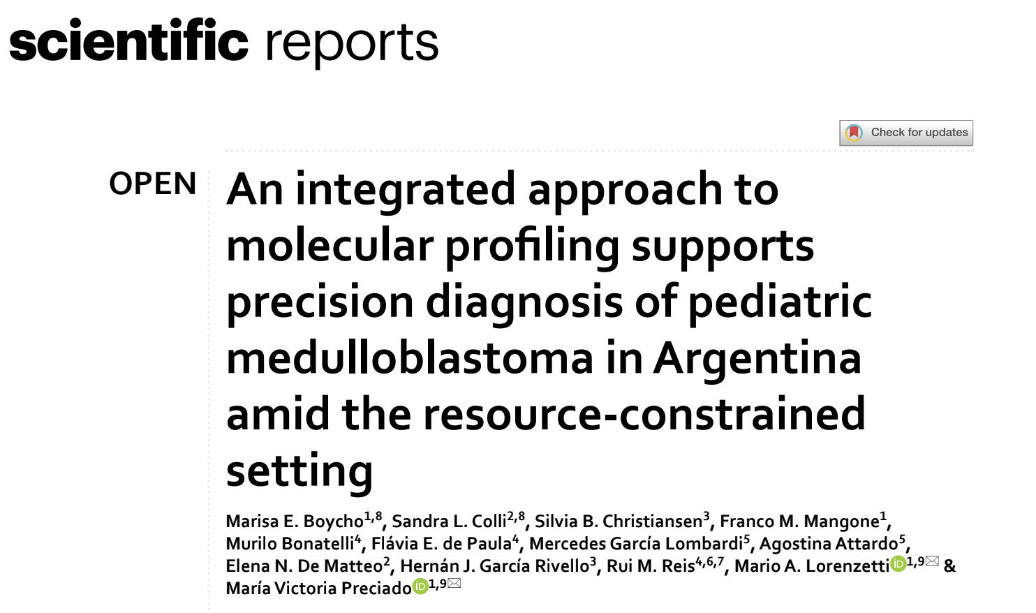 Publicación: Avances en el diagnóstico molecular del meduloblastoma pediátrico en Argentina